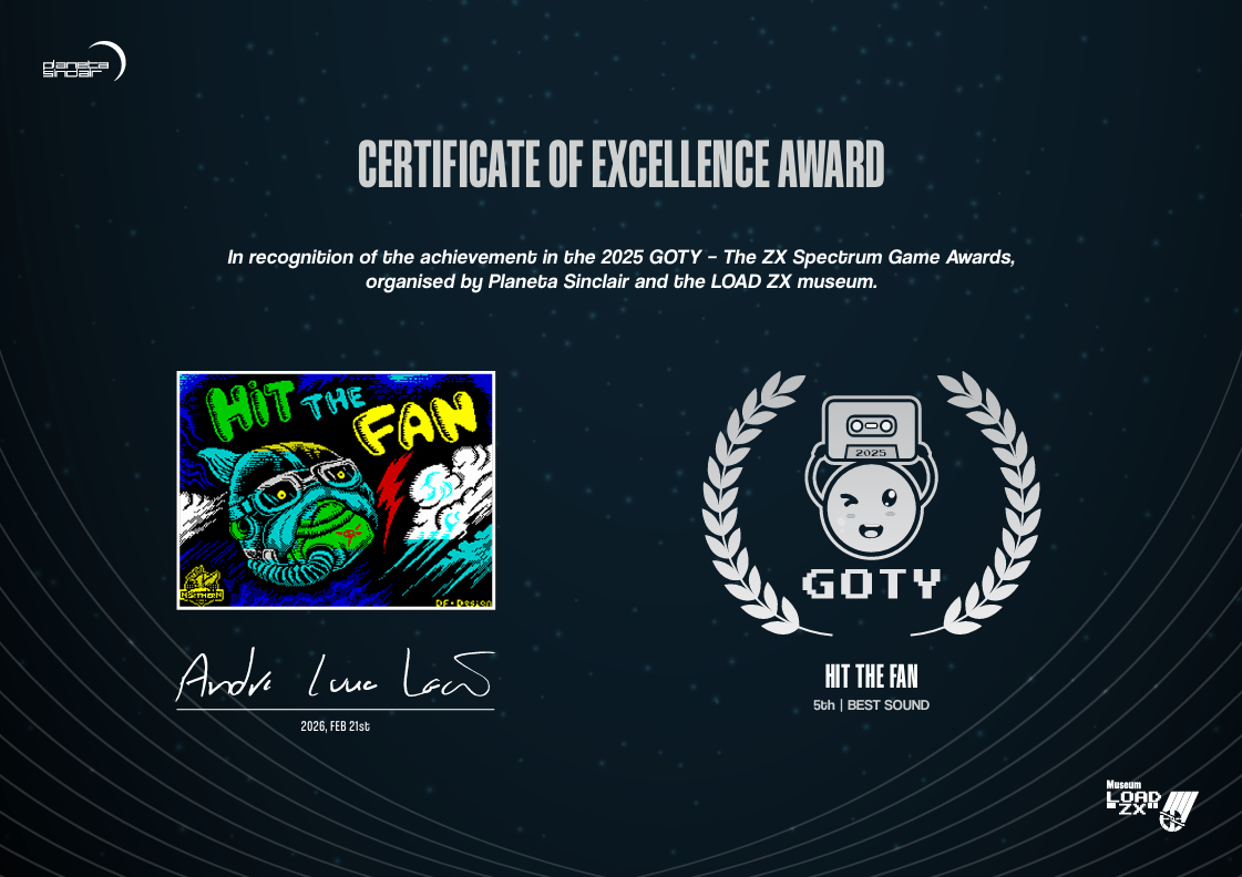 Hit the Fan received an award for its soundtrack at the 2025 GOTY awards which was really pleasing as a lot of work went into the sound.